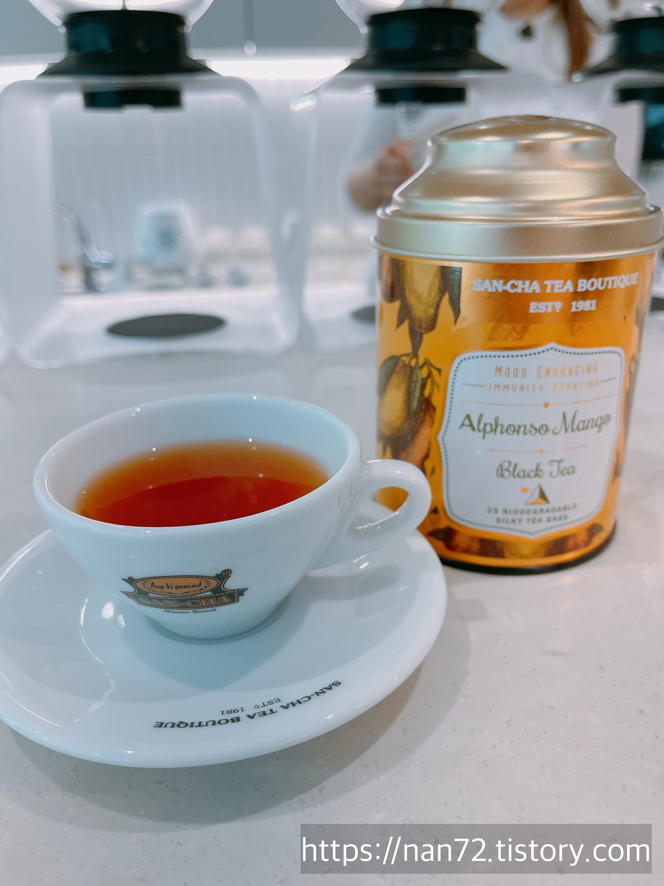 처음으로 주신 게 망고티. 여름이라 차게 해 주셨는데 달달한 망고향이 코를 굉장히 즐겁게 해주었어요. 목 넘김도 좋아서 처음 마시자마자 이거 사자! 고 했는데 다음에 나오는 차들도 너무 좋아서 한참 고민하게 됐네요. 망고티는 인기품목 중 하나라고 합니다.