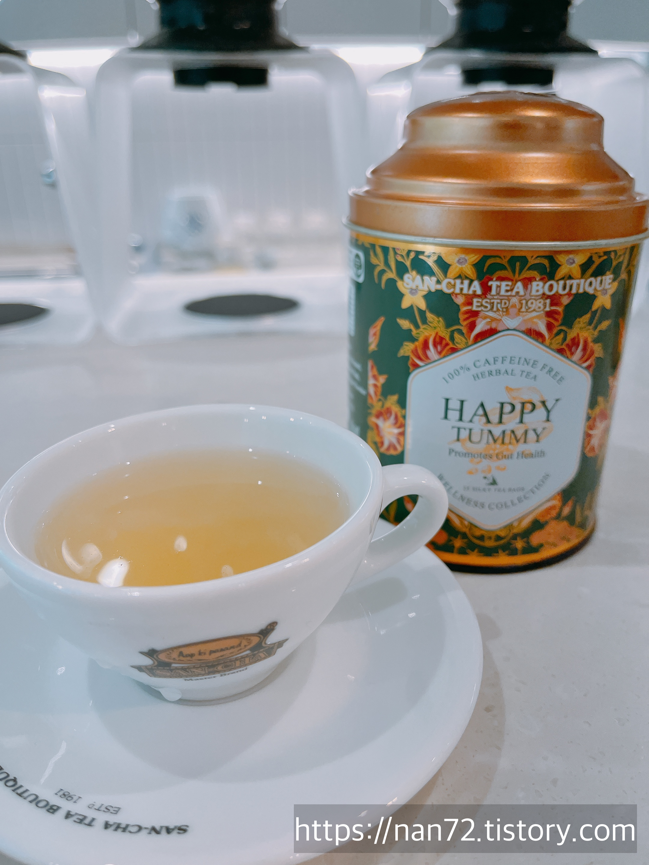 다음은 카페인 프리차. 최근 수면의 질이 별로라 카페인을 되도록 섭취 안 하려고 한다는 친구에게 딱 맞는 차였어요. 몇 달 전이라 자세히 기억은 안 나는데 심신 안정에 좋다는 차였나? 앞서 마셨던 망고차도 좋았지만 이 차는 직접적으로 나한테 좋은 영향을 주는 것 같아서 더 끌렸네요. 그러나 이다음에 나오는 차로 인해 이 차 또한 존재감이 옅어지고 마는데...