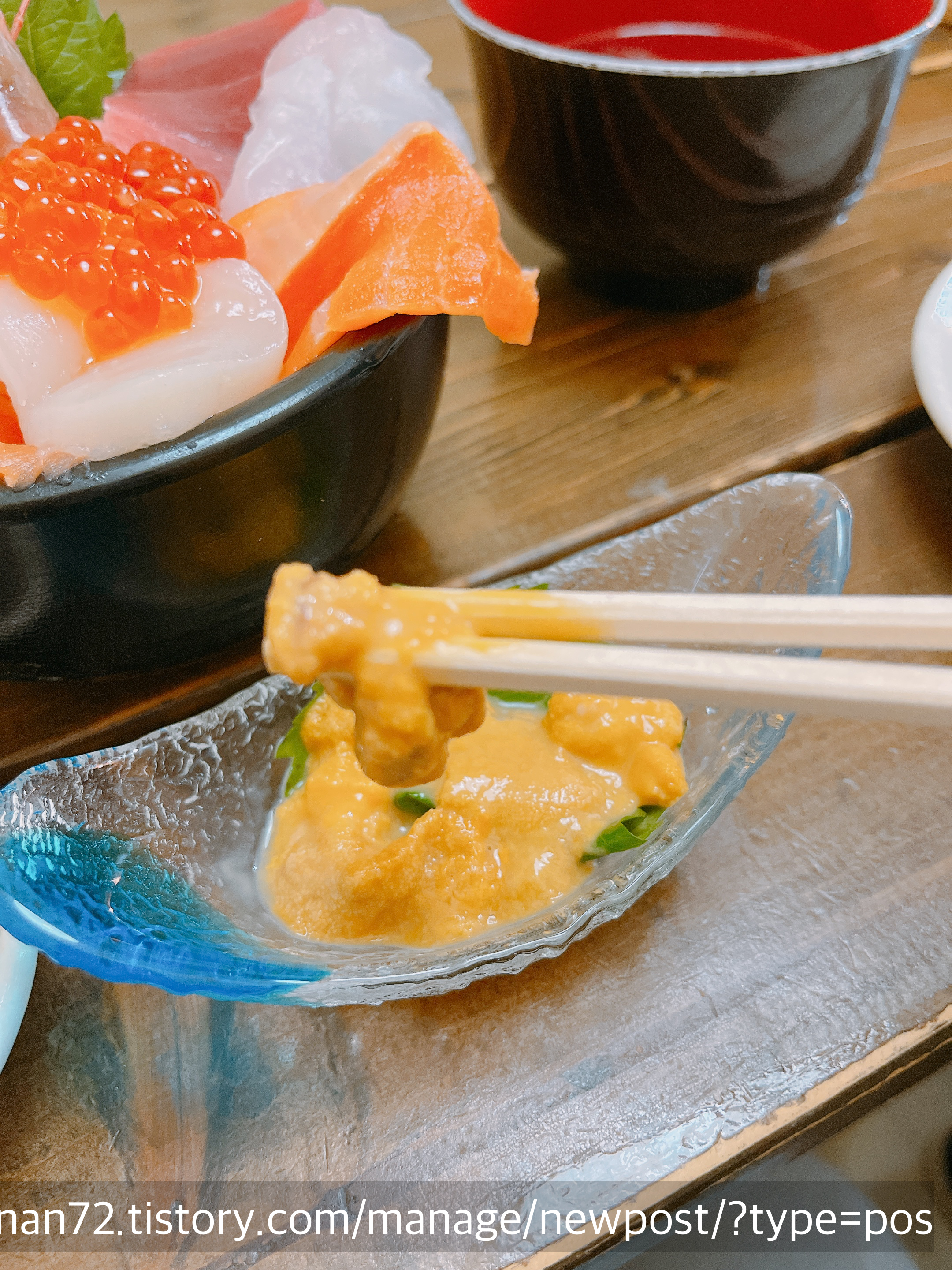 그리고 우니!!!!! 우니 그 자체만으로도 뭐 찍어먹을 필요 없이 그냥 호로록 마시는 게 가능합니다. 실제로는 아까워서 호로록 마시는 짓은 못 했지만 아무튼 달고 입에서 녹아요ㅠㅠ 새우랑 우니에 홀리고 말았답니다 흑흑 또 먹고 싶다... 해산물 최고...