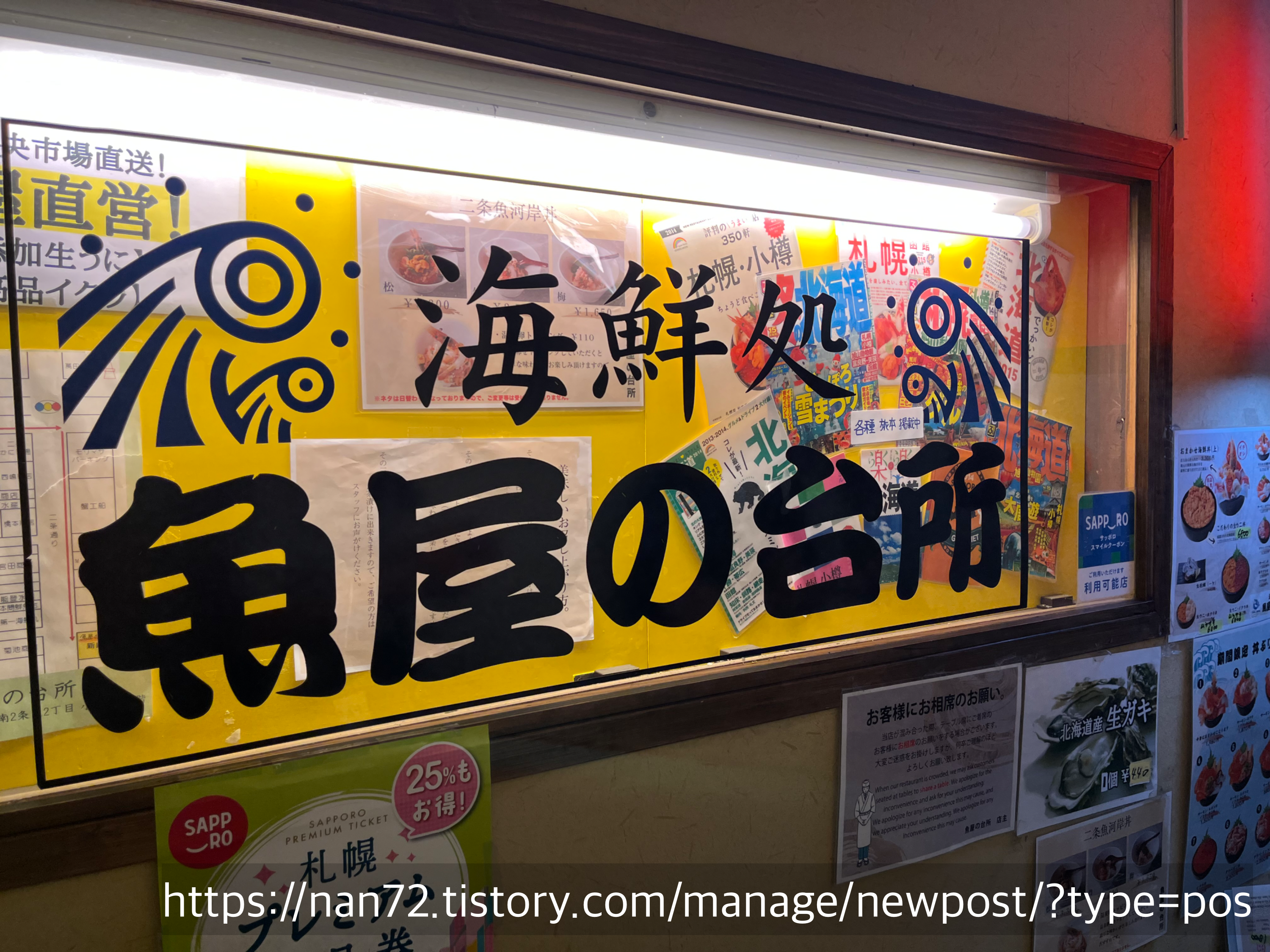 드디어 기다리고 기다리던 홋카이도 여행, 그리고 기나긴 과정을 거쳐(왜냐하면 전 지방에서 인천공항까지 올라가야 되기 때문에... 전날 늦은 밤부터 이동하기 시작했죠ㅠㅠ) 삿포로에 도착 후, 친구와 호텔에서 합류하고 점심을 먹으러 근처 시장으로 갔습니다. 호텔이 번화가에 있던 터라 역이 바로 근처에 있었고 주변에도 뭐가 많았어요. 일단 미리 검색해 뒀던 가게에 가기 위해 니죠시장으로 고고.