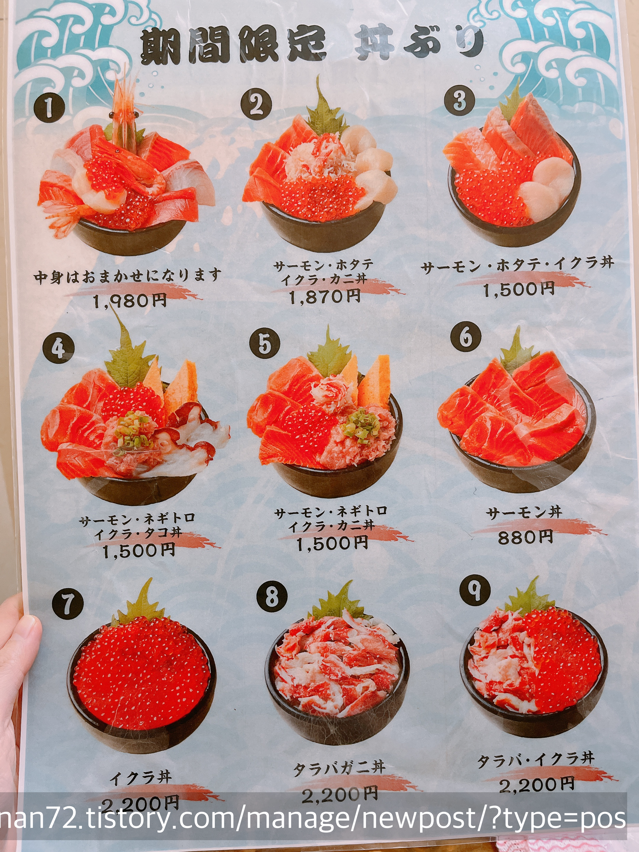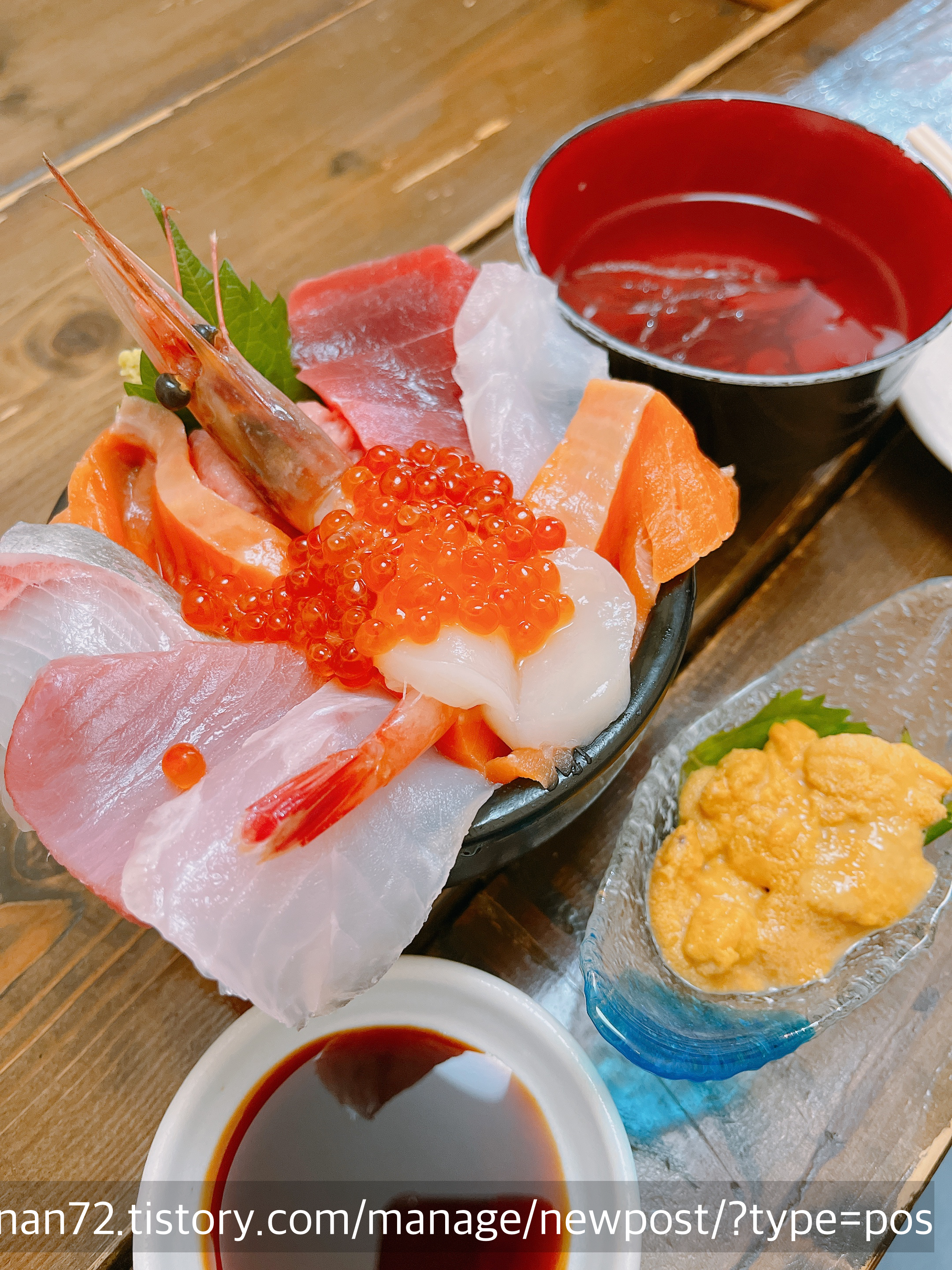 홋카이도 해산물은 워낙 싱싱하고 맛있기로 유명해서 엄청 두근거리면서 들어갔어요. 그리고 무엇보다 기나긴 여정으로 배가... 너무 고팠습니다... 점심으로 카이센동 먹으려고 벼르고 있던 터라 더 그랬네요.