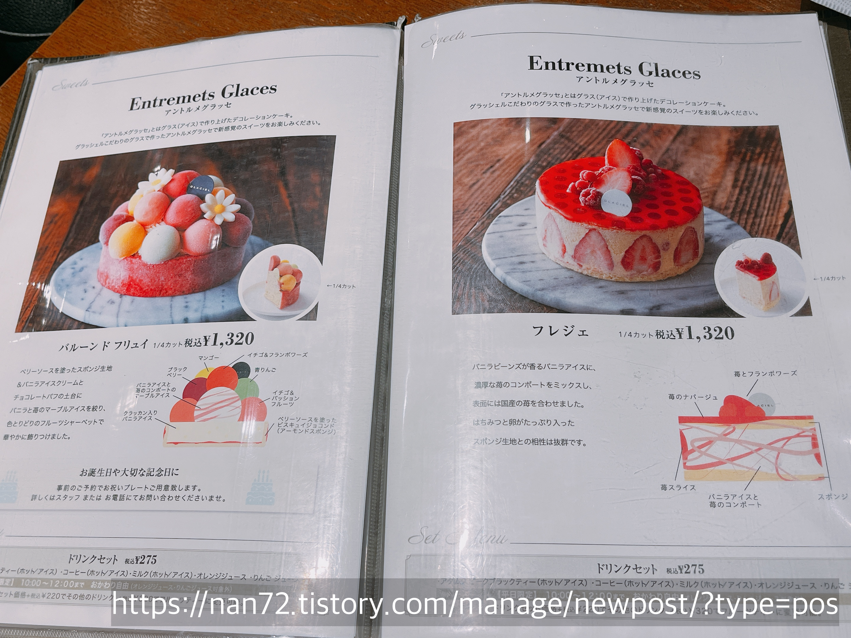 요거는 파르페가 아닌 메뉴. 가게 앞에서 본 케이크가 눈에 띄네요. 진짜 먹고 싶었지만 역시나 어쩔 수 없이 포기ㅠㅠㅠㅠ