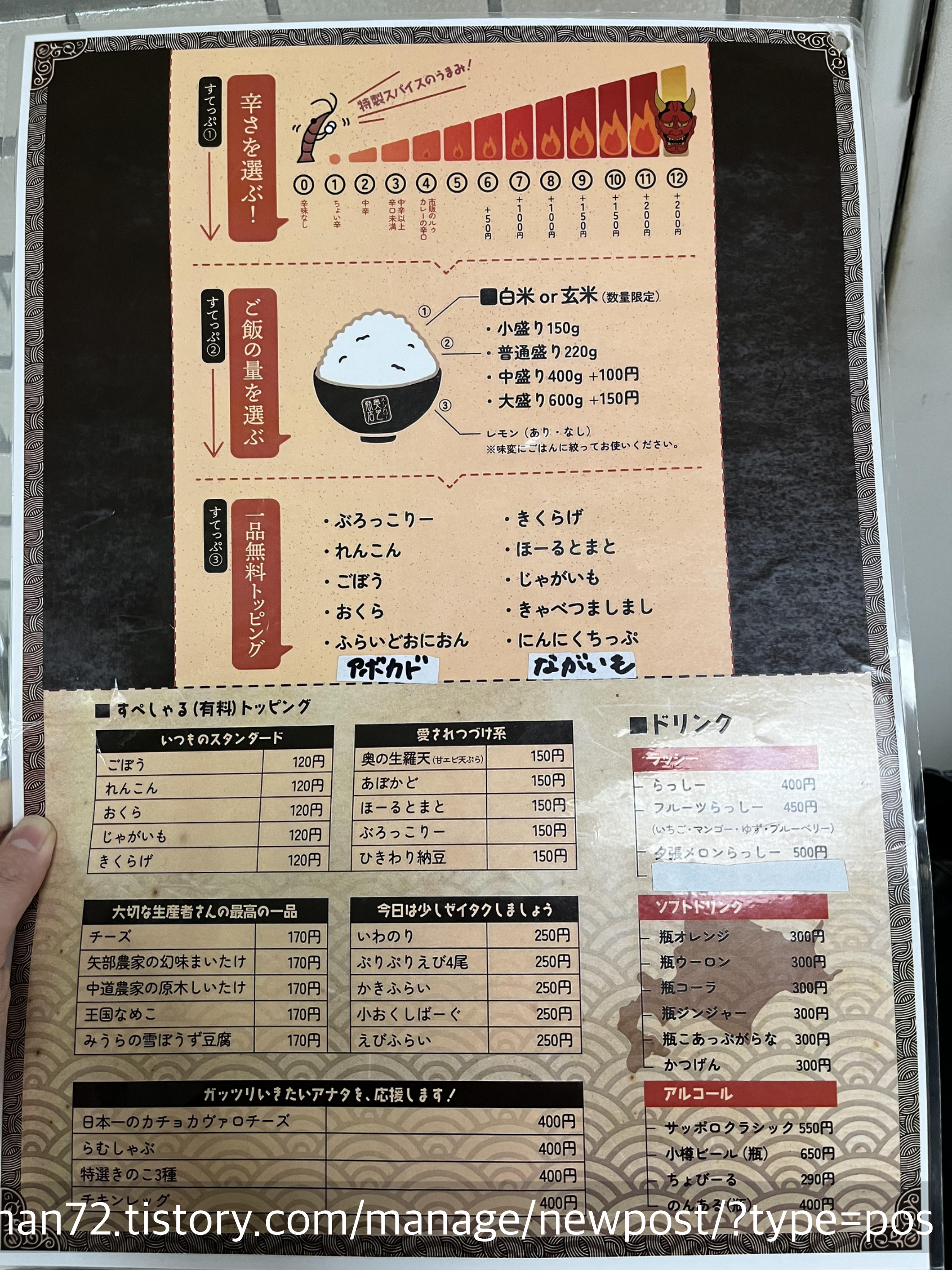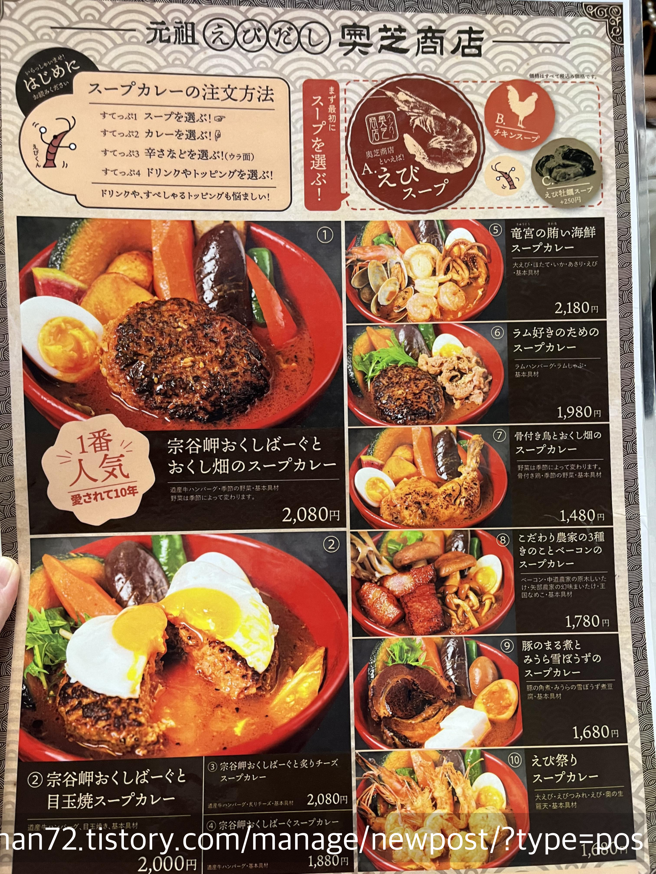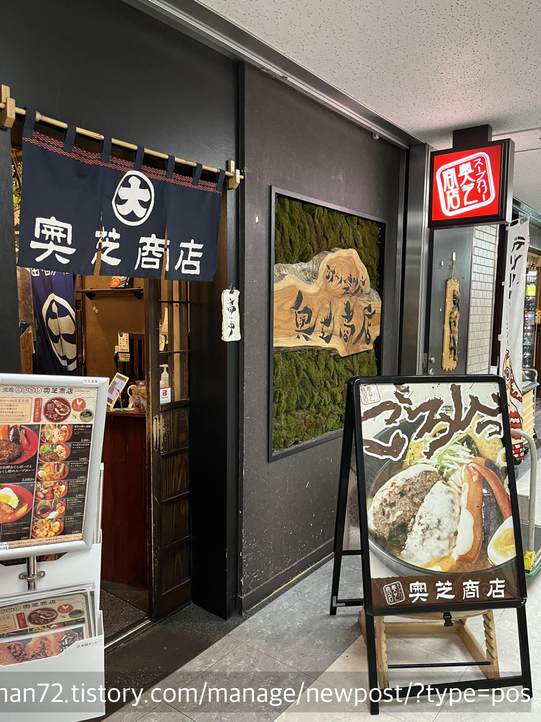 친구가 알려준 홋카이도 스프카레 랭킹을 보는데 1위랑 2위는 너무 웨이팅이 길 것 같은 거예요... 그래서 그나마 상대적으로 줄이 덜 길 것 같은 3위인 가게로 가자, 해서 간 곳이 바로 <오쿠시바 쇼텐>이었습니다.