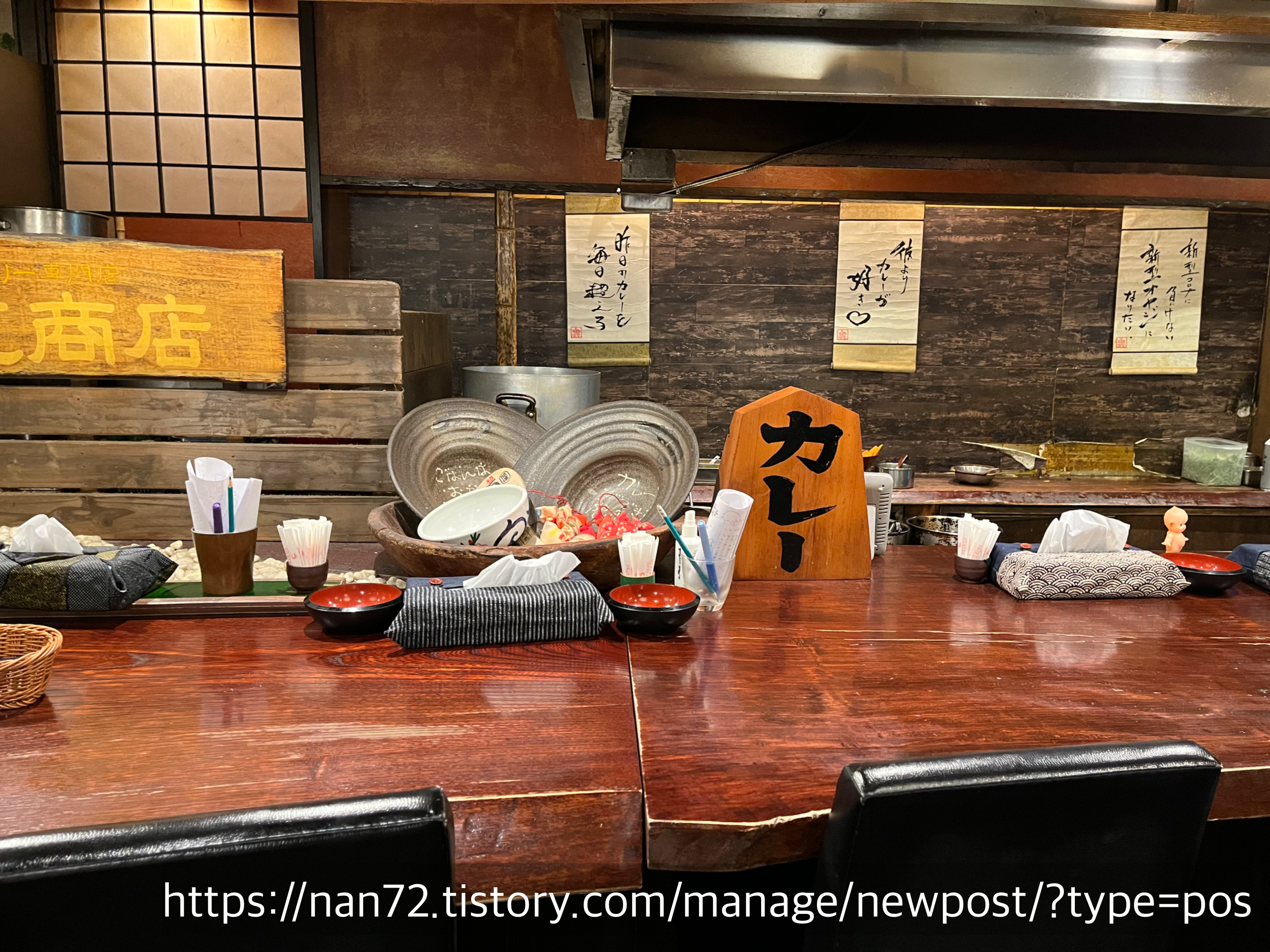 내부사진. 다른 사람 얼굴 안 나오게 찍으려다 보니 첫 장은 좀 애매하게 찍혔지만 두 번째 카운터석은 꽤 괜찮게 찍힌 것 같아요. 저랑 친구는 테이블석이었습니다. 생각보다 꽤 빨리 가게에 들어왔어요. 스프카레가 회전율이 좋아서 그런건지 많은 사람이 들어온 만큼 금방 금방 자리가 빠지는 것 같았어요.