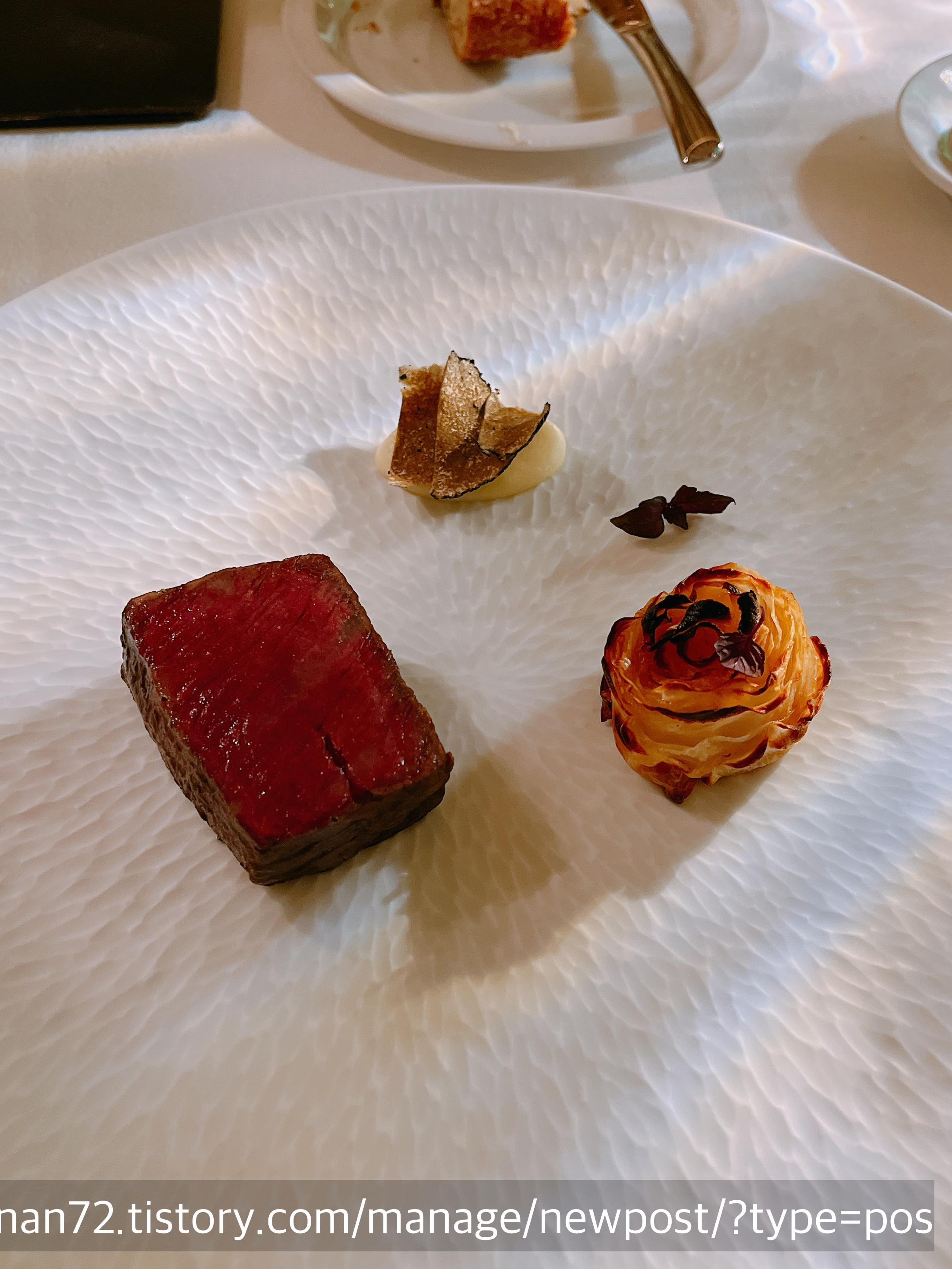 고기 굽기는 셰프님이 알아서 해주신다 해서 따로 고를 수는 없는데, 나온 걸 맛보니 정말 딱 좋은 굽기더라구요. 제가 너무 구운 것도, 그렇다고 너무 설익은 것도 안 좋아하는데 정말 적당한 굽기였어요. 솔직히 지금까지 먹은 스테이크 중에서 제일 좋았던 것 같아요ㅋㅋㅋ 다른 메뉴는 별 욕심 안 났는데 스테이크는 조금 더 먹고 싶었네요 흑흑. 스테이크 외에 나머지 두 가지도 진짜 맛있었는데 설명을 까먹었습니다... 기억나는 것은 트러플뿐...