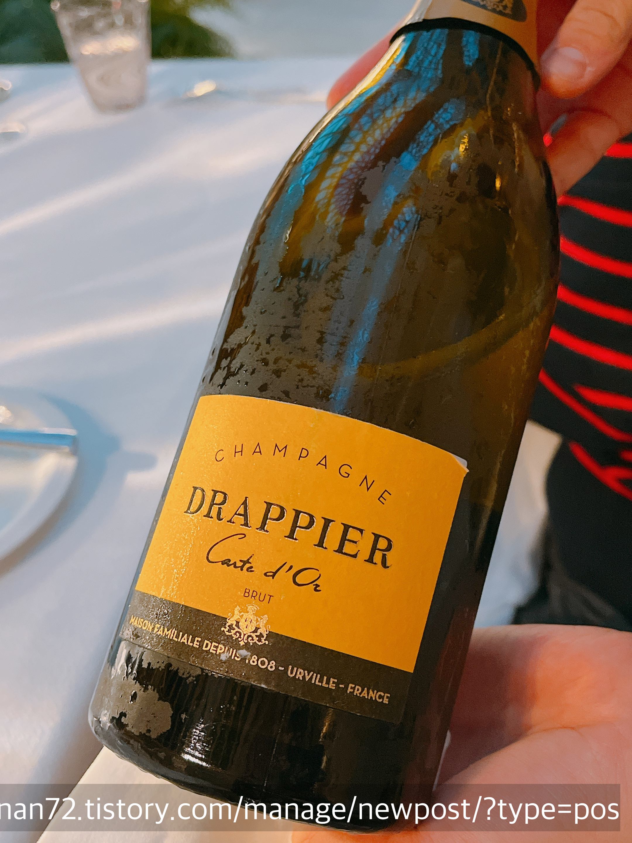 식전에 먼저 주신 스파클링 와인인 <샴페인 드라피에 까르뜨 도르>.