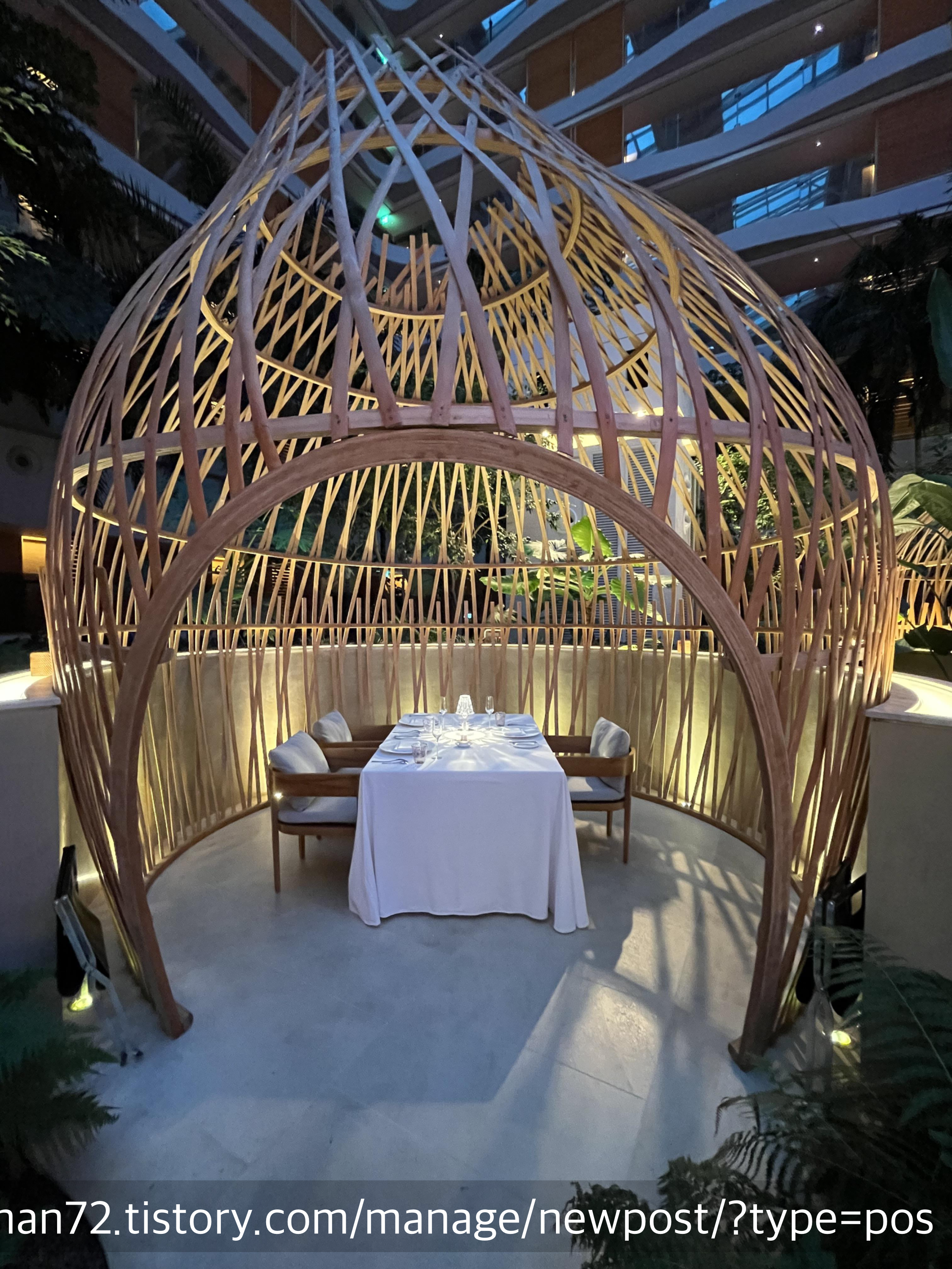 해비치 호텔 1층으로 들어가면 파인다이닝, 바 등등이 바로 보여요. 밤이 되면 불빛이 화려해지는데 이거 보는 맛이 있죠.