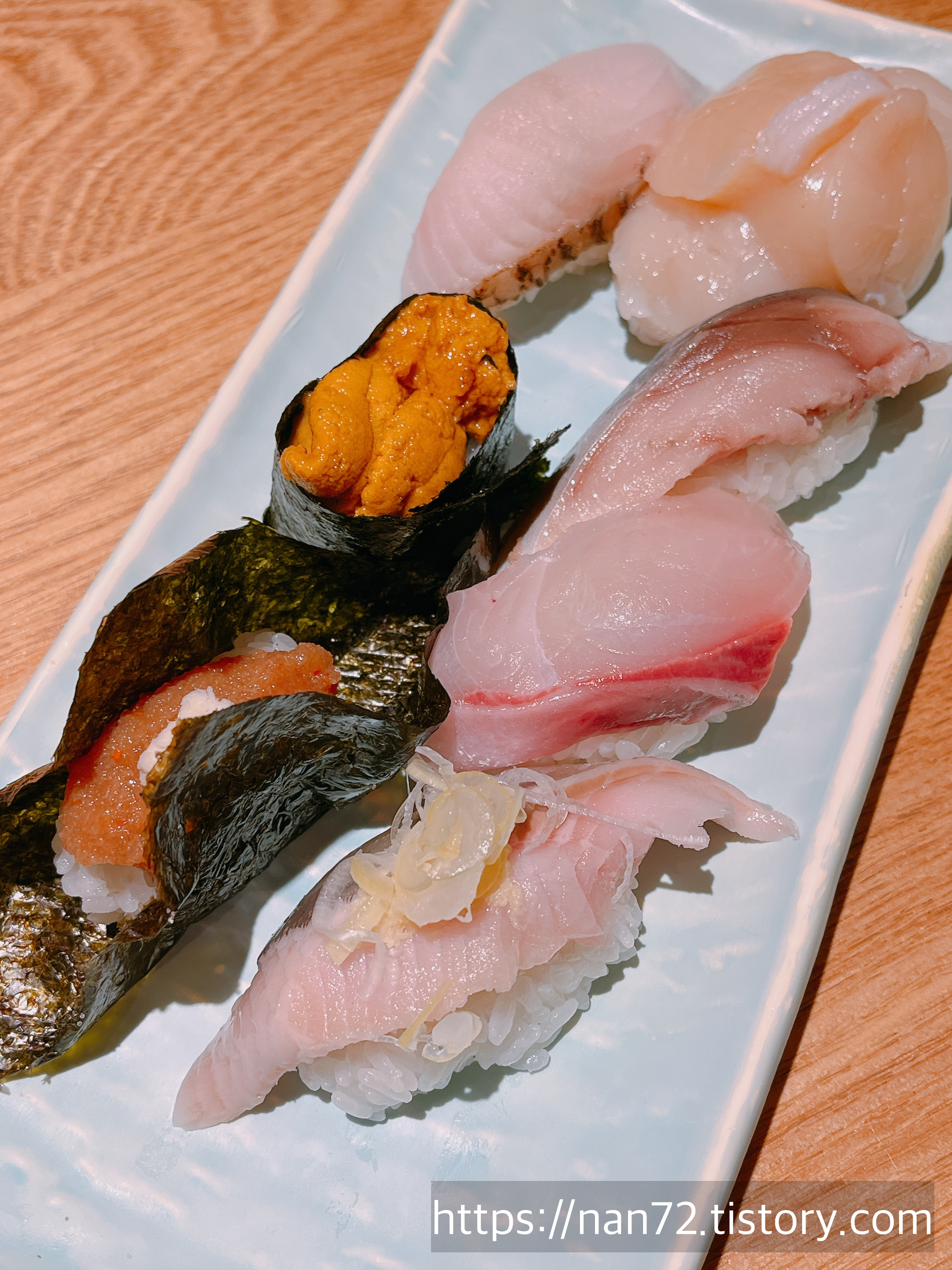 저는 고민하다가 우선 특상 7종 초밥세트를 주문했어요. 우니에 관자에 딱 봐도 엄청 화려하고 신선해 보이죠ㅠㅠㅠㅠ 입에서 살살 녹았습니다… 맛있게 먹어서 지금도 기억하면 입맛 다셔요.