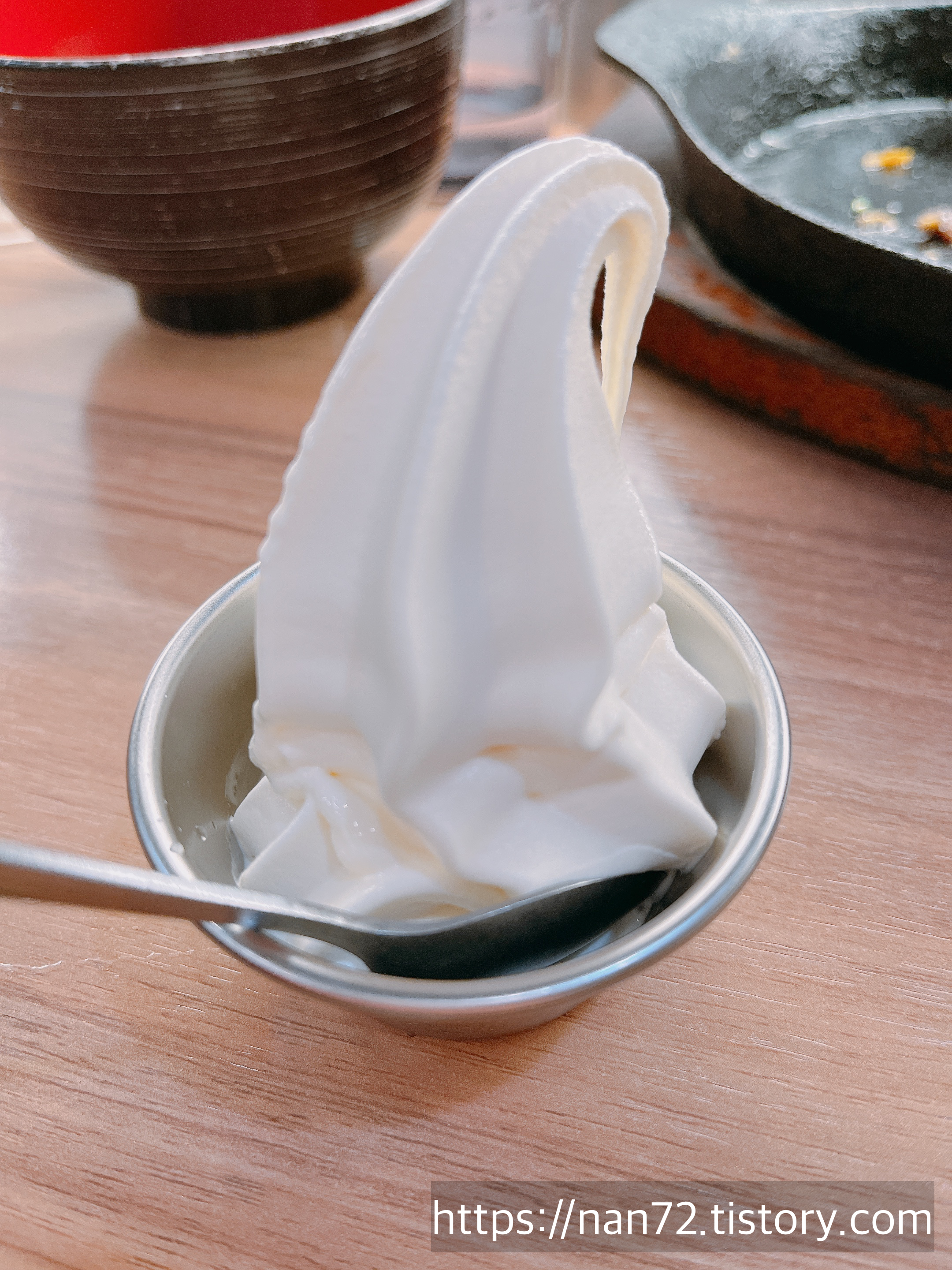 다 먹고 나면 요렇게 아이스크림이 나와요. 맛은 평범하게 맛있는 아이스크림이었어요.