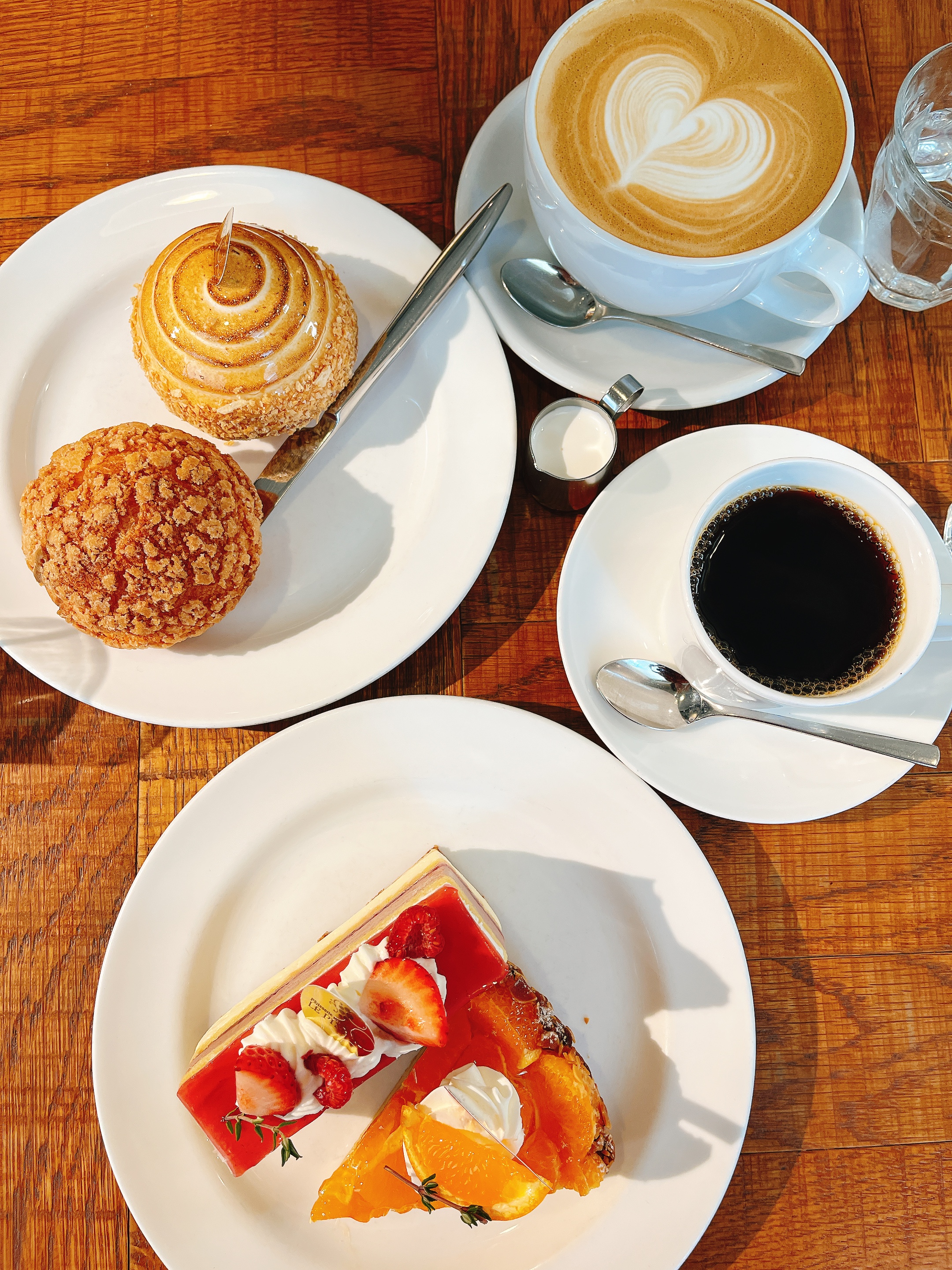 제가 원했던 예쁘고 근사한 디저트... 이미 먹기도 전부터 이건 맛이 없을 수가 없다는 생각이 들 수밖에 없는 아름다운 녀석들... 원래 가고 싶었는데 휴무로 못 갔던 첫 번째 가게는 이 시점에서 제 머릿속에서 깔끔히 날아갔어요. 항상 생각하는 거지만 이런 광경을 볼 때마다 제 위장은 왜 한계가 있어서 5개도 못 먹는지 화가 날 지경입니다(?) 2개나 먹음 많이 먹은 거죠 흑흑...