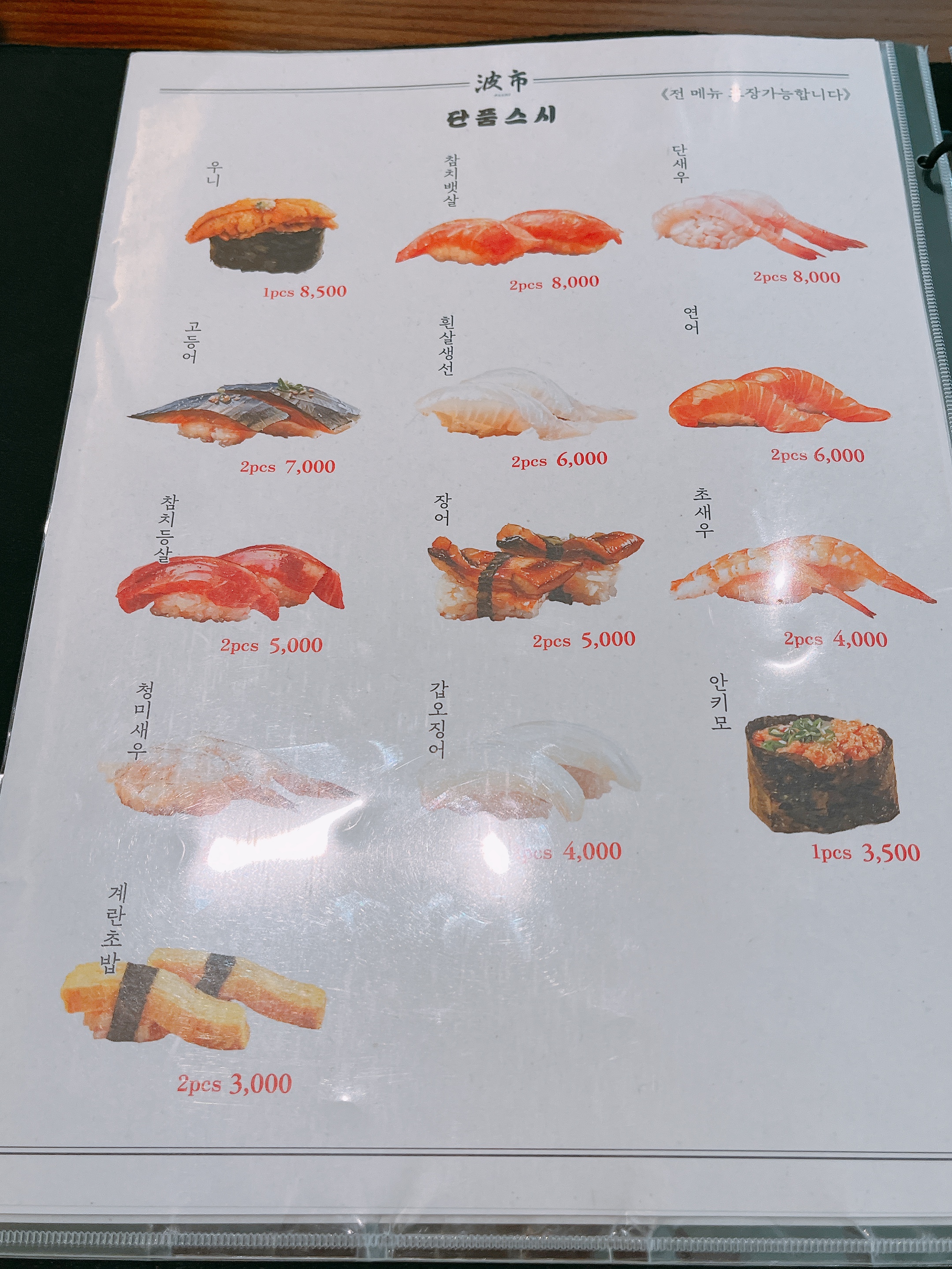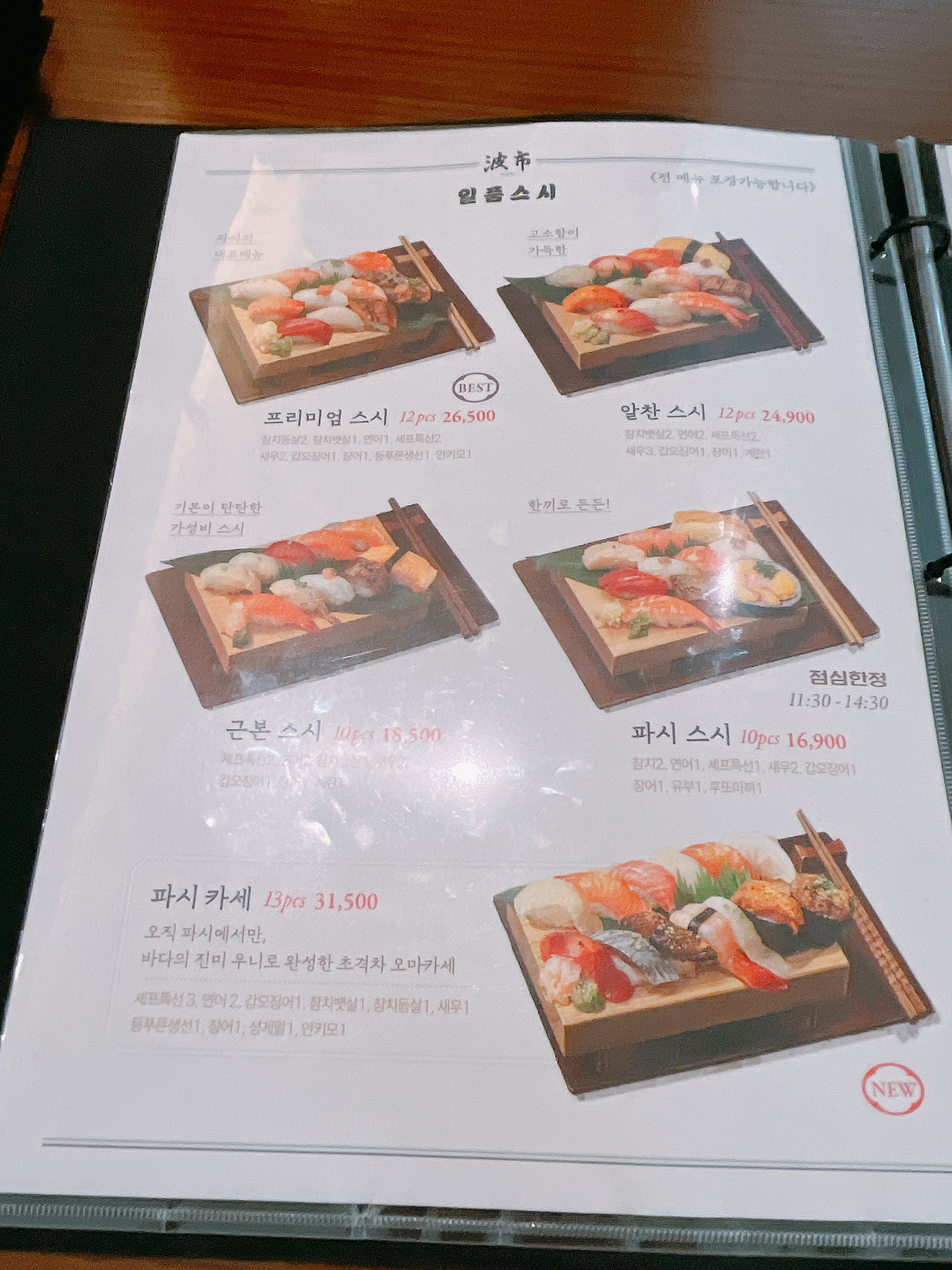 메뉴판. 일단 처음 왔으니 베스트라고 써진 프리미엄 스시로 골라봤어요.