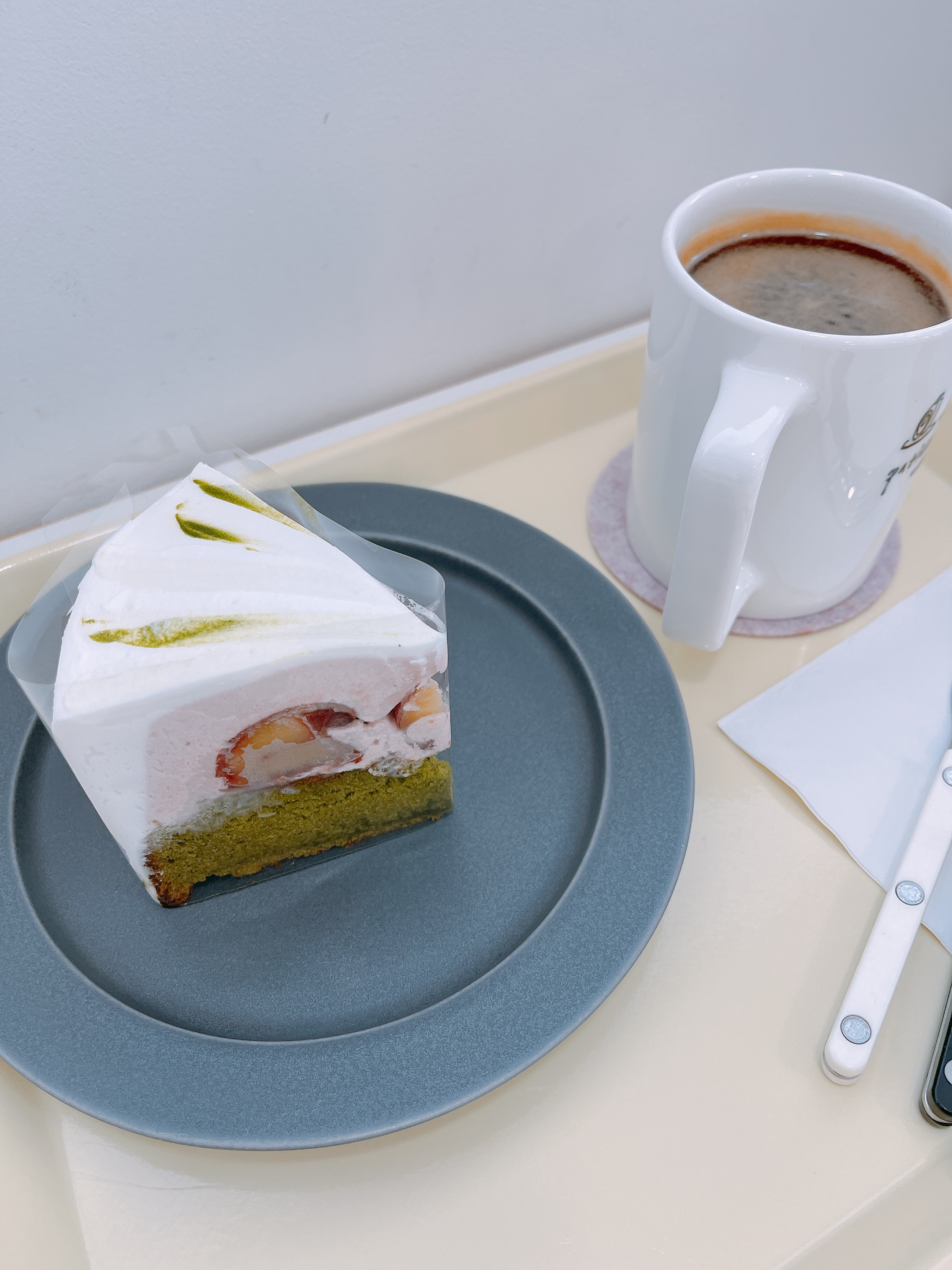 한입 얻어먹었는데 말차시트에 크림이 잘 어울리더라구요. 말차맛이 진해서 좋았어요.